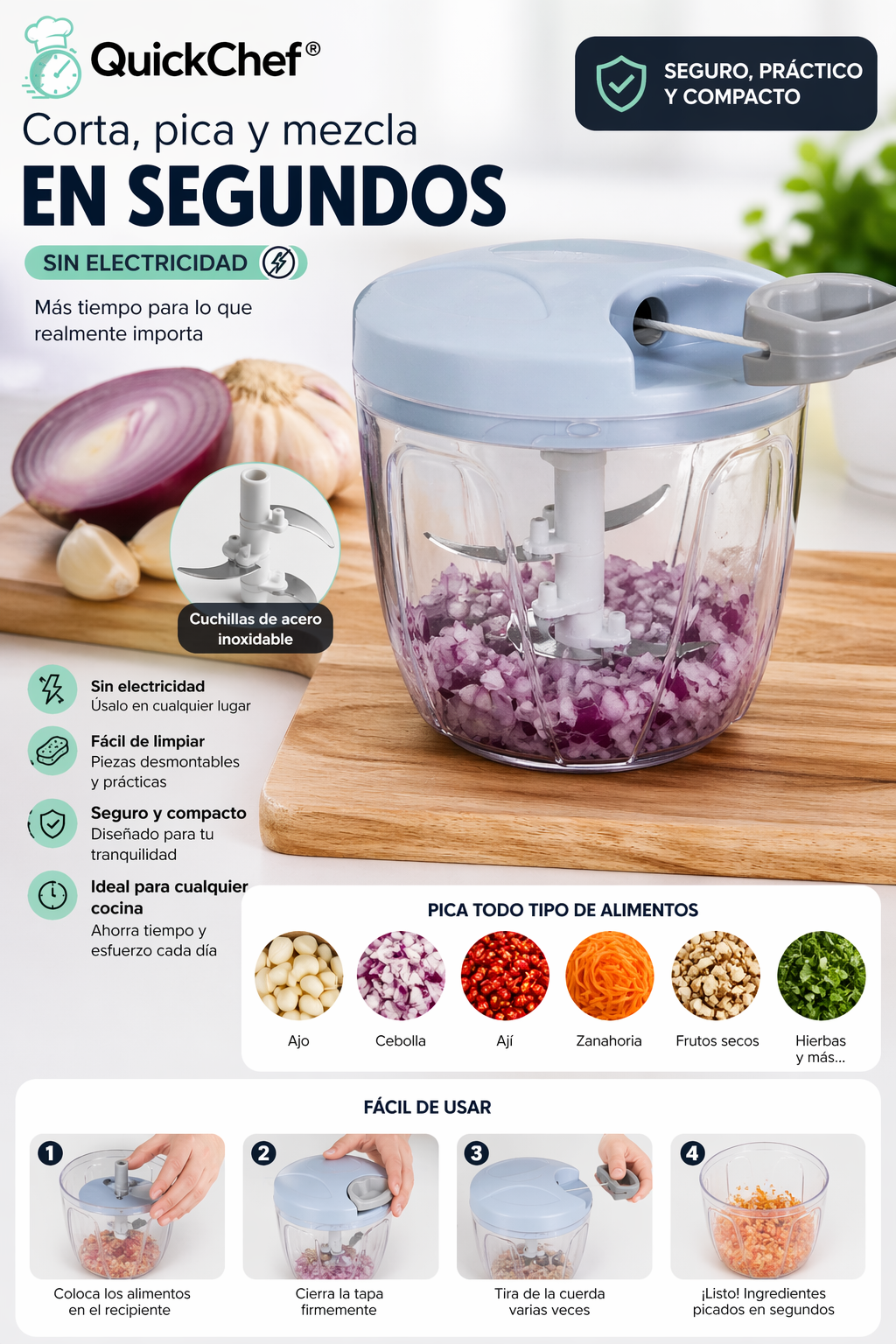 - 🔪 Pica verduras, frutas, ajo y más en segundos
